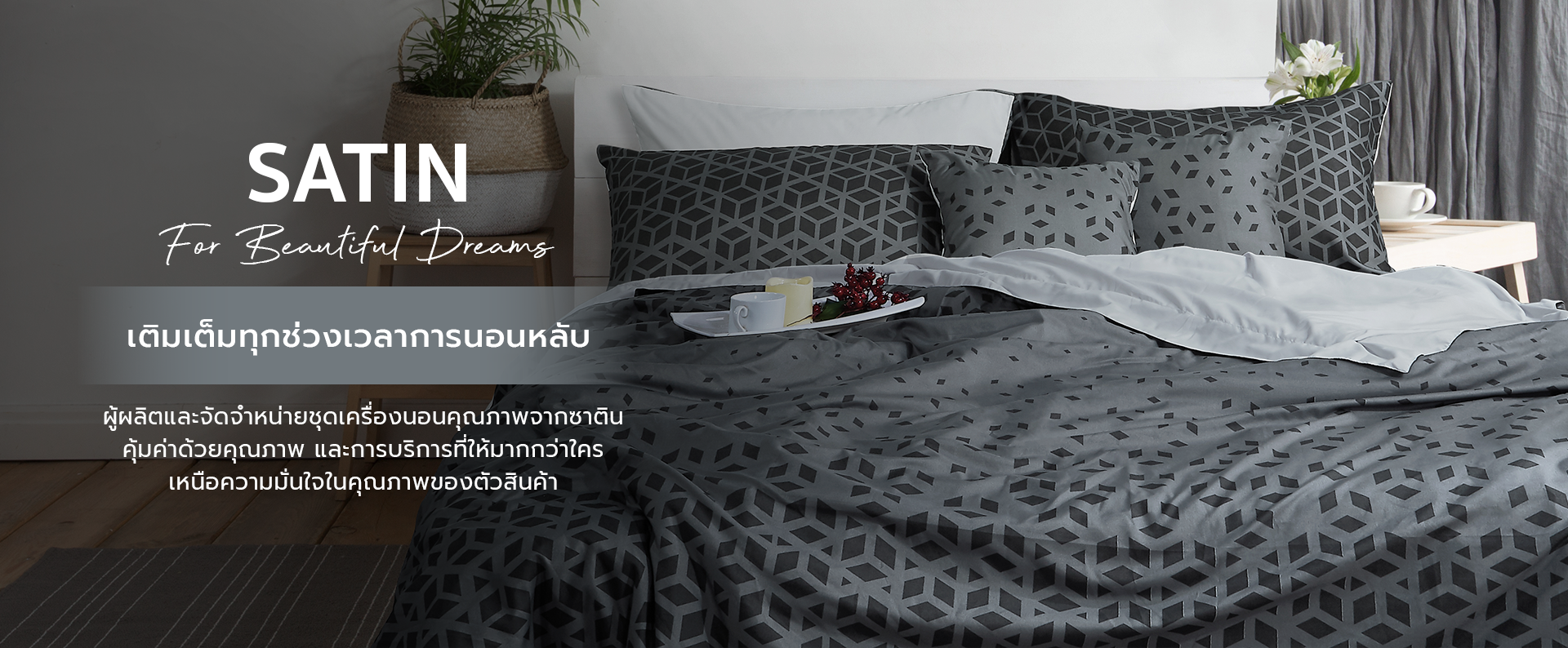 จากประสบการณ์ และมุมมองอันก้าวไกลกว่า 70 ปี ที่บริษัทโชคลาภบุญไชย จำกัด ผู้ผลิตและจัดจำหน่ายชุดเครื่องนอนซาติน (Satin) มีความมุ่งมั่น และพัฒนาอย่างต่อเนื่อง เพื่อรักษาระดับมาตรฐานของซาติน ทั้งทางด้านสินค้า การผลิต ความพร้อม การบริการหลังการขาย และความเป็นมืออาชีพในกลุ่มธุรกิจเครื่องนอน ซึ่งทำให้ Satin ก้าวสู่ตลาดการค้าต่างประเทศ โดยผลิตภัณฑ์ของเราผลิตขึ้นด้วยความประณีต ทุกขั้นตอนผ่านกระบวนการตรวจสอบคุณภาพ และเอาใจใส่ทุกขั้นตอน เพื่อให้ได้ผลงานที่ออกมาตรงตามมาตรฐานที่ตั้งไว้