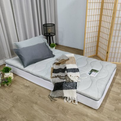 Topper แผ่นรองนอนที่รองรับน้ำหนักด้วย Elas tic latex แผ่นยางพาราที่ความยืดหยุ่นให้ความนุ่มสบายมากทุกครั้งในการนอน ทำให้การนอนแต่ละครั้งทำให้คุณรู้สึกผ่อนคลายและมีความคงทนตลอดอายุการใช้งานในการสัมผัสของผ้า Cotton Knit ซึ่งผ้ายืดเพิ่มความยืดหยุ่นในการนอนและระบายอากาศได้ดี และให้ความแข็งแรงทนด้านด้วยผ้า Jacquard ที่รองรับการสัมผัสกับพื้น โดยการออแบมาเพิ่มเป็นพิเศษคือการสร้างสายรัดให้สามารถรักกับที่นอนได้อีกด้วย