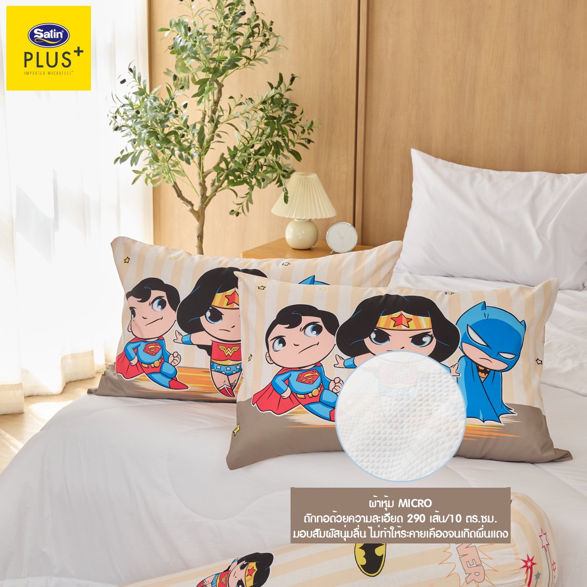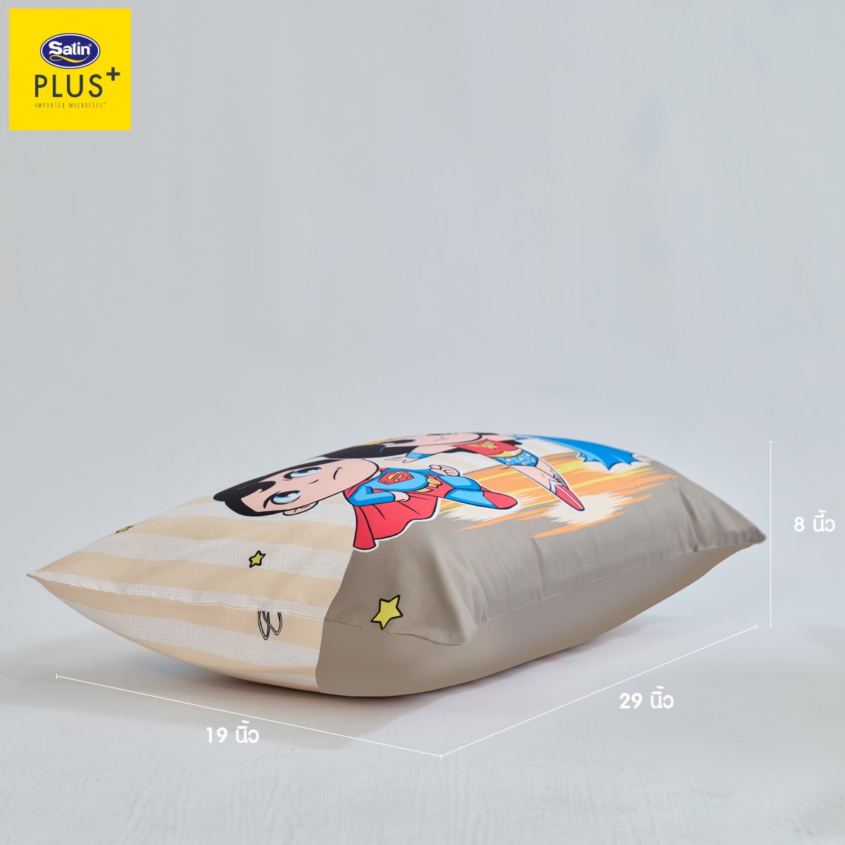 Satin Plus หมอนหนุน รุ่น Licenser DC Super Friends มอบสัมผัสพิเศษให้คุณพบช่วงเวลาแห่งความสุขในโลกแห่งความฝัน รวมเหล่าฮีโร่สุดเท่ หนานุ่ม คืนตัวดี เติมพลังและความสนุกให้ทุกค่ำคืน นุ่มฟู ไม่ยุบง่าย แฟนฮีโร่ต้องมี! เพิ่มชั่วโมงการหลับลึกของคุณให้ยาวนานมากขึ้นด้วยเส้นใย Polyester Pillow-Satin 100% (Class A) นวัตกรรมที่ผ่านการคิดค้นมาอย่างละเอียดแล้วว่าสามารถรองรับสรีระของศีรษะและลำคอได้อย่างสมดุลลงตัว
