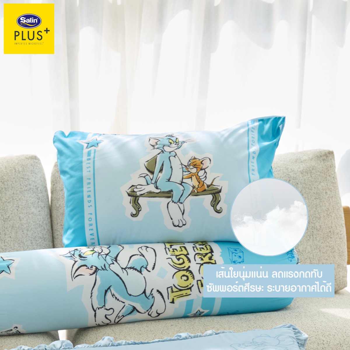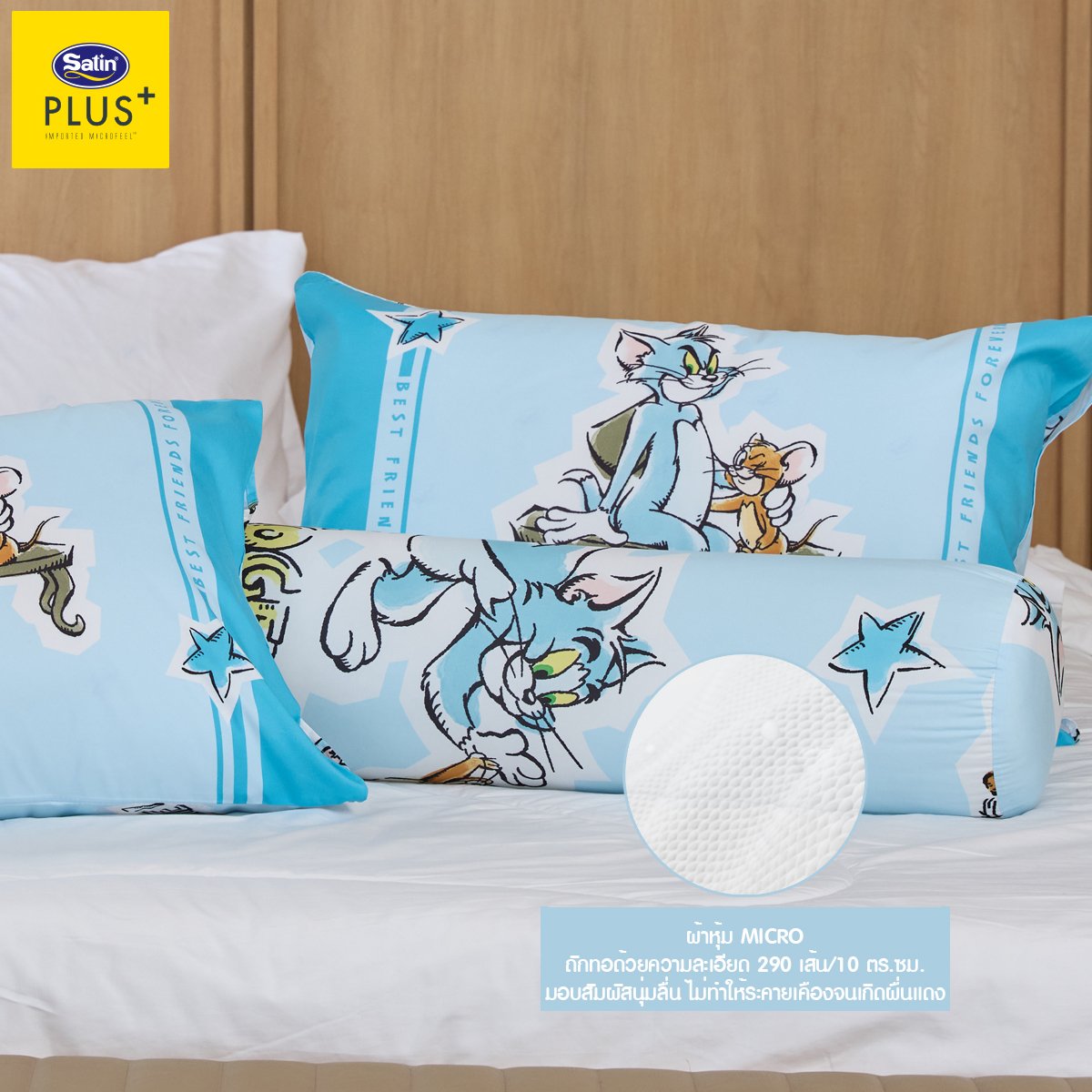 หมอนข้าง Satin Plus Tom & Jerry ลิขสิทธิ์แท้สุดน่ารัก กอดฟิน นุ่มแน่น เติมความสดใสให้ห้องนอนทุกวันยังมีความนุ่มลื่นสบาย ทนทานด้วยคุณสมบัติของผ้าหุ้ม Microfeel ถักทอด้วยความละเอียด 290 เส้น ต่อ 10 ตารางเซนติเมตร มอบสัมผัสใหม่ๆ มีคุณสมบัติป้องกันอาการภูมิแพ้และยับยั้งการเกิดแหล่งสะสมของไรฝุ่น ให้คุณตื่นมารับแสงแดดด้วยความสดชื่นในยามเช้า