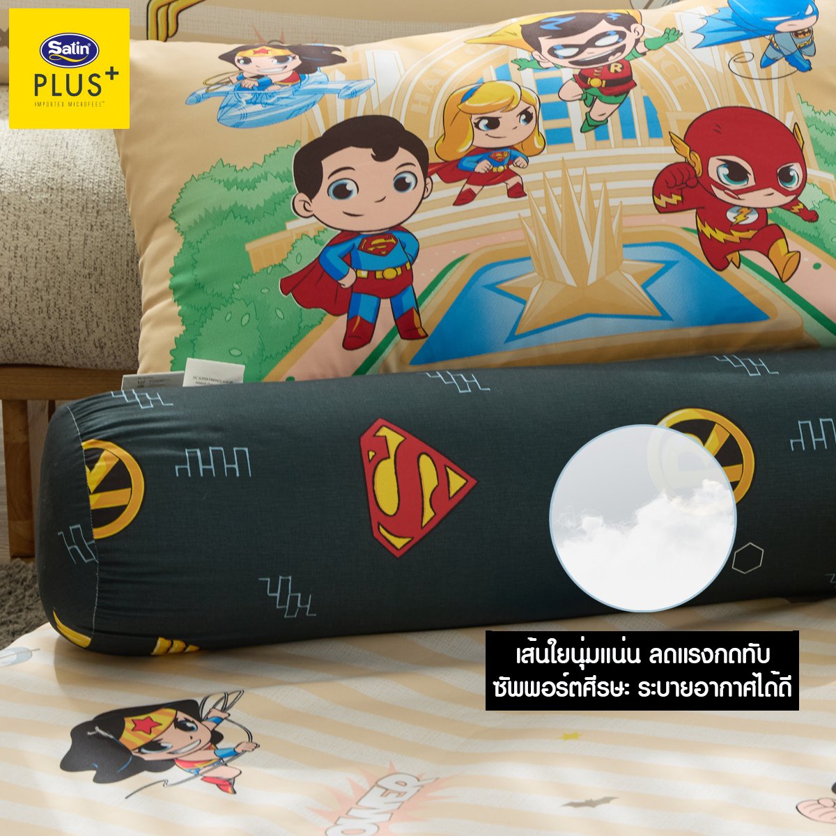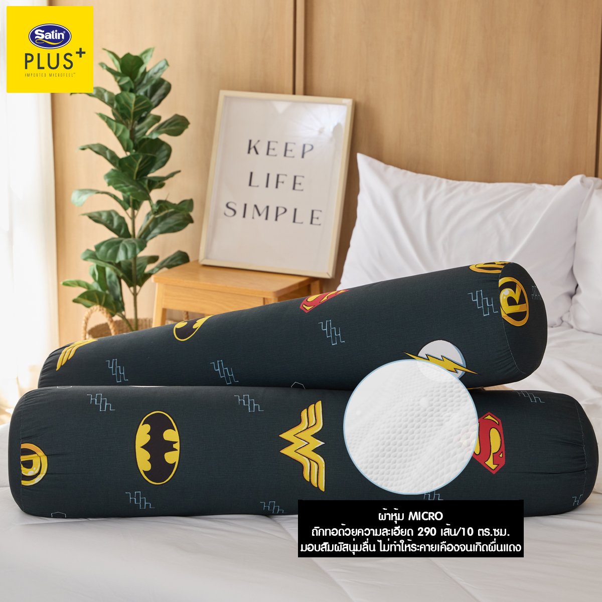 หมอนข้าง Satin Plus DC Super Friends ลิขสิทธิ์แท้สุดน่ารัก กอดฟิน นุ่มแน่น เติมความสดใสให้ห้องนอนทุกวันยังมีความนุ่มลื่นสบาย ทนทานด้วยคุณสมบัติของผ้าหุ้ม Microfeel ถักทอด้วยความละเอียด 290 เส้น ต่อ 10 ตารางเซนติเมตร มอบสัมผัสใหม่ๆ มีคุณสมบัติป้องกันอาการภูมิแพ้และยับยั้งการเกิดแหล่งสะสมของไรฝุ่น ให้คุณตื่นมารับแสงแดดด้วยความสดชื่นในยามเช้า