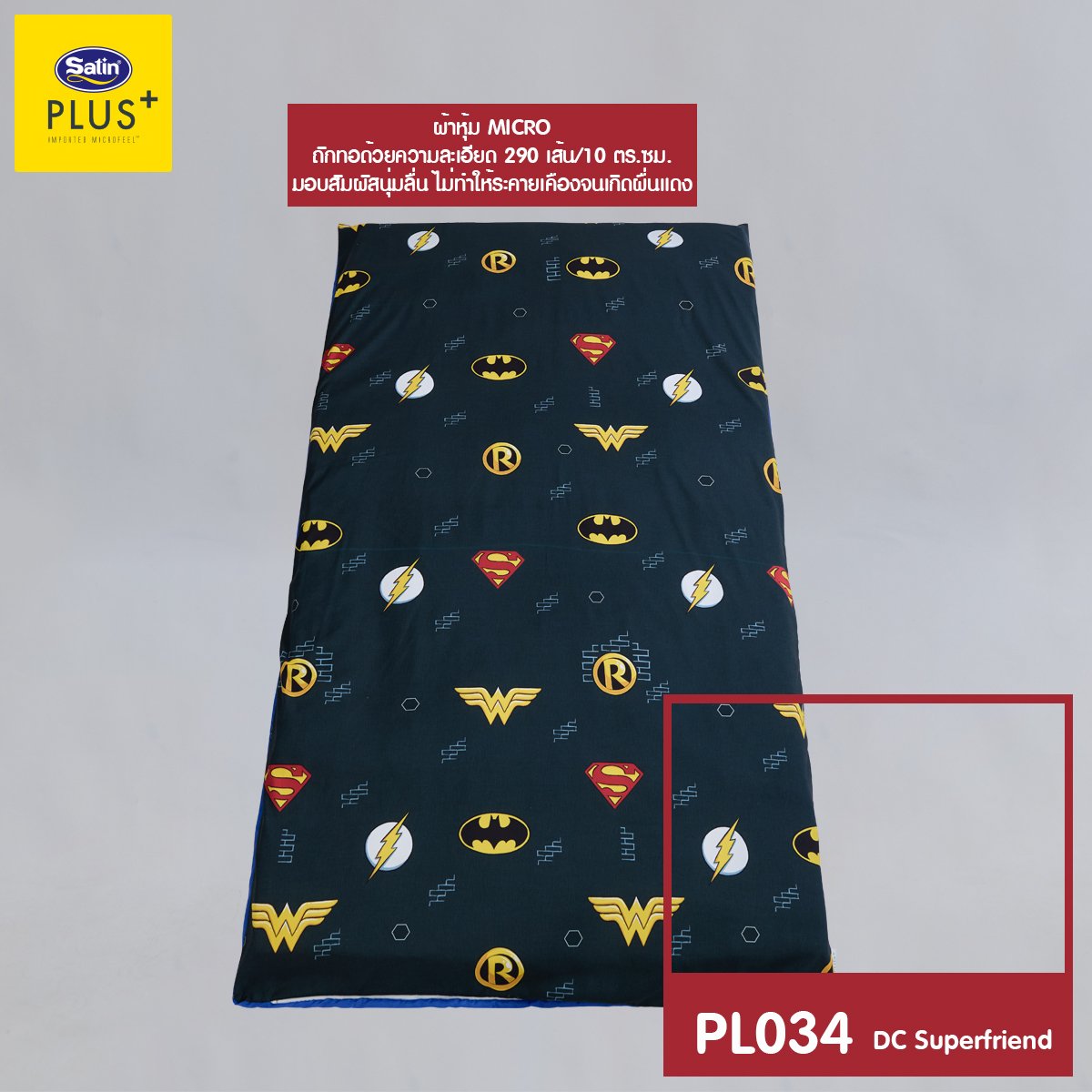 Satin Plus ปิกนิก มอบสัมผัสให้คุณพบช่วงเวลาแห่งความสุขในโลกแห่งความฝันกับลาย DC Super Friends ลิขสิทธิ์แท้ พับเก็บง่าย ฟองน้ำนุ่มแน่น เติมพลังฮีโร่ให้ทุกค่ำคืนพักผ่อน พักผ่อนเต็มพลัง พร้อมตื่นมาสู้วันใหม่แบบฮีโร่! เพิ่มชั่วโมงการหลับลึกของคุณให้ยาวนานมากขึ้นด้วย ใย Pure Synthetic fibers-Satin (Class A) นวัตกรรมที่ผ่านการคิดค้นมาอย่างละเอียดแล้วว่าสามารถรองรับสรีระได้อย่างสมดุลลงตัว