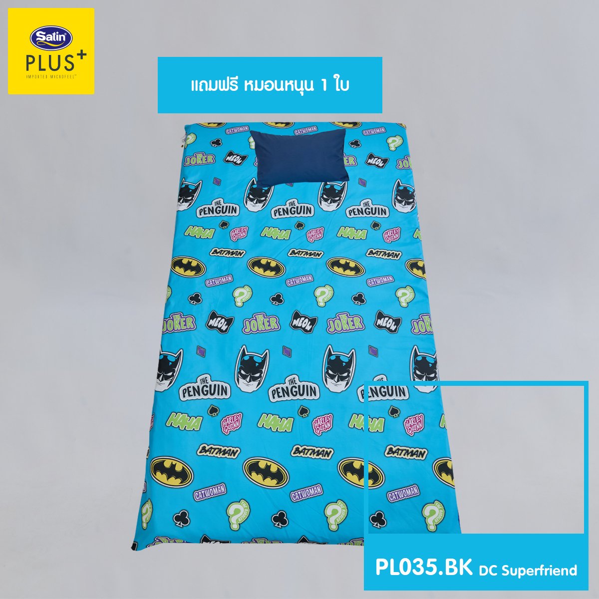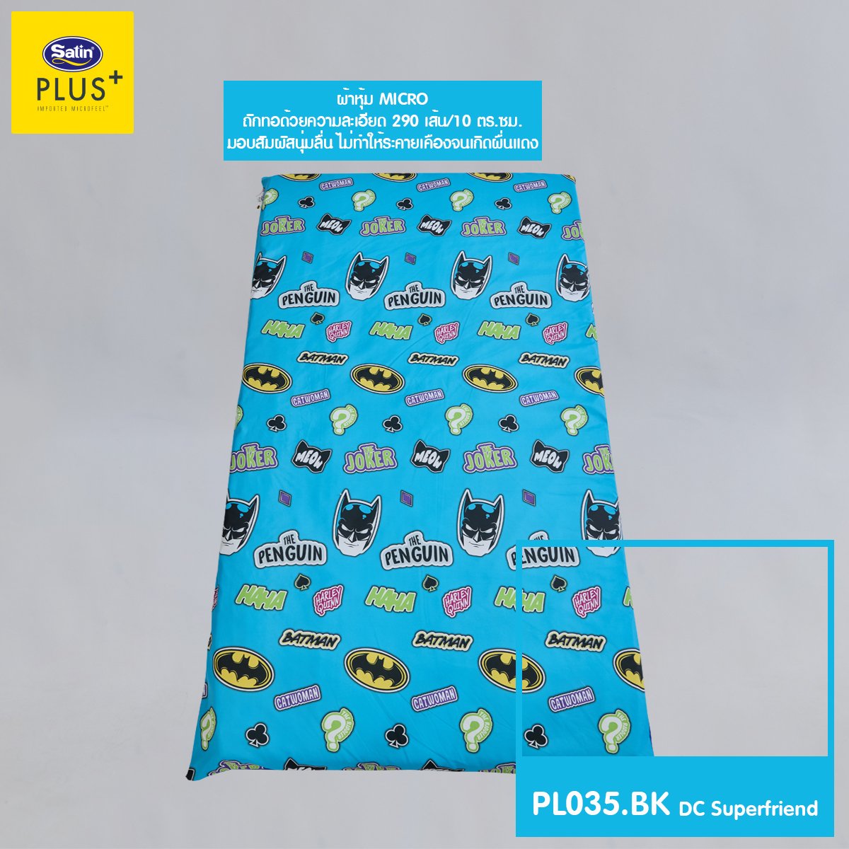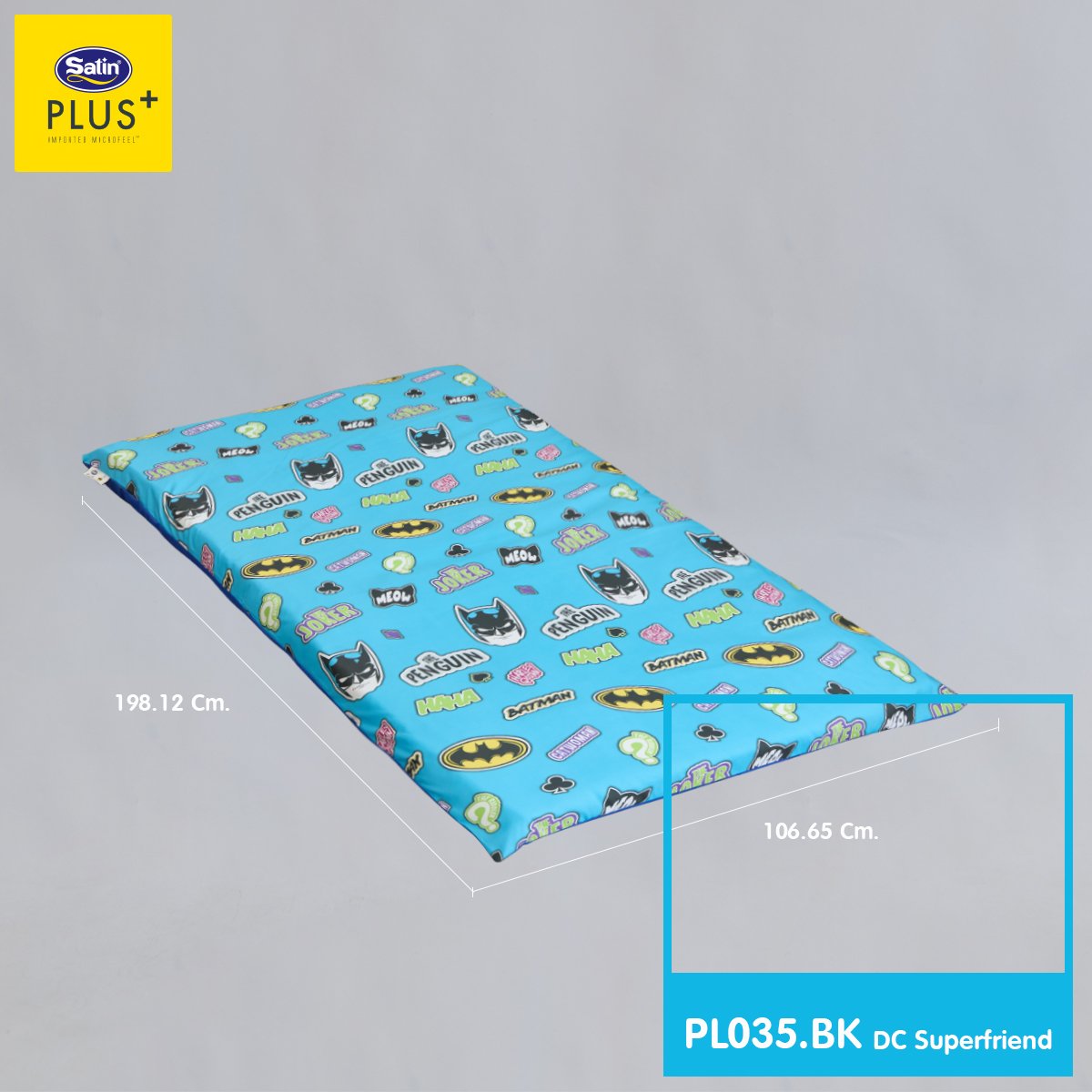 Satin Plus ปิกนิก มอบสัมผัสให้คุณพบช่วงเวลาแห่งความสุขในโลกแห่งความฝันกับลาย Batman ลิขสิทธิ์แท้ ดีไซน์เท่ พับง่าย ฟองน้ำนุ่มแน่น ซักทำความสะอาดสะดวก เติมพลังให้การพักผ่อนของคุณ...เหมือนฮีโร่ตัวจริง! เพิ่มชั่วโมงการหลับลึกของคุณให้ยาวนานมากขึ้นด้วย ใย Pure Synthetic fibers-Satin (Class A) นวัตกรรมที่ผ่านการคิดค้นมาอย่างละเอียดแล้วว่าสามารถรองรับสรีระได้อย่างสมดุลลงตัว